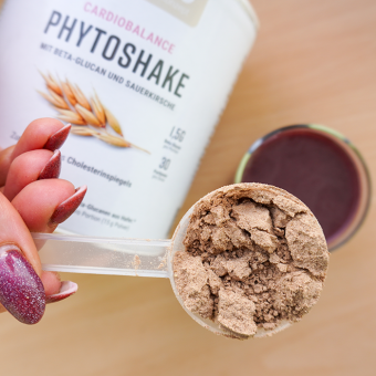 Der INSUMED PHYTOSHAKE Cardiobalance beinhaltet sekundäre Pflanzenstoffe wie Beta-Glucane aus Hafer, Polyphenole aus der Sauerkirsche, Flavinoide aus Kakao und Spermidin aus Weizenkeimpulver. Er enthält außerdem eine ballaststoffreiche und pflanzliche Proteinkombination aus Hafer- und Kürbisprotein.